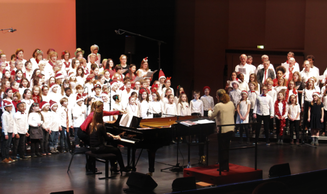 Elèves des classes à horaires aménagés primaire, collège, le Vivier des Voix, les chœurs de jeunes et les chœurs d'adultes.