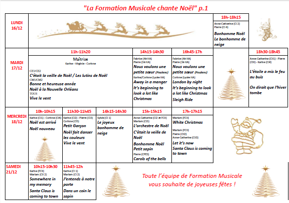 La Formation Musicale chante Noël du 16 au 21/12